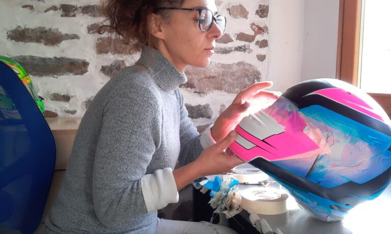 È a Ren, frazione del comune di Gosaldo, nel cuore delle Dolomiti bellunesi, che ha scelto di vivere da vent’anni a questa parte Giorgia Ascari, tra le pochissime designer di caschi da auto e go-kart in Italia. Qui, ha creato il suo laboratorio e ha visto crescere la sua famiglia, concedendosi un ritmo lento che apparentemente contrasta con quello dei motori e dei circuiti a cui appartiene professionalmente.